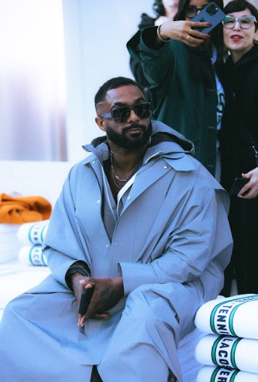 Sentado ao lado de grandes nomes do mundo da moda e do entretenimento internacional, Baco chamou atenção ao vestir um look alinhado às tendências globais.