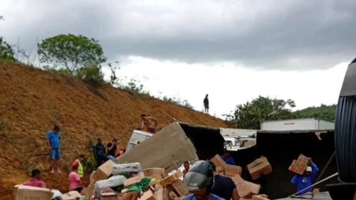 Brejões: carga da Shopee é saqueada por populares após tombamento de carreta