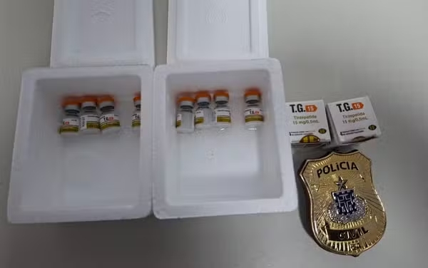Durante a revista, os policiais encontraram duas caixas de isopor utilizadas para armazenamento térmico. Dentro delas, havia oito ampolas identificadas como T.G IS – Tirzepatida 15mg/0,5ml, de fabricação estrangeira. De acordo com a polícia, cada caixa com quatro ampolas era comercializada por R$ 1,4 mil.