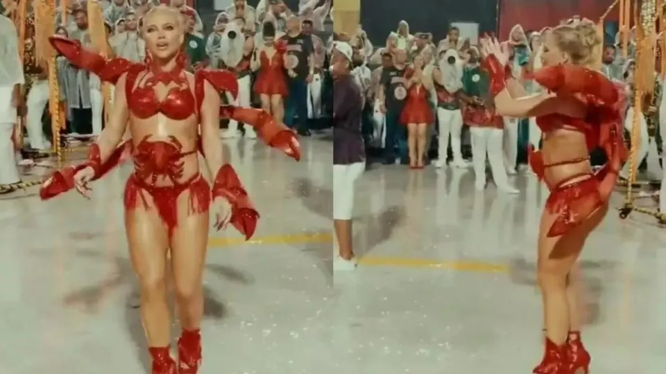 A fantasia, inteiramente vermelha, fazia referência ao enredo da Grande Rio, “A nação do mangue”, e ainda trazia um acessório em formato de caranguejo na região do abdômen — o que acabou reforçando ainda mais as teorias.