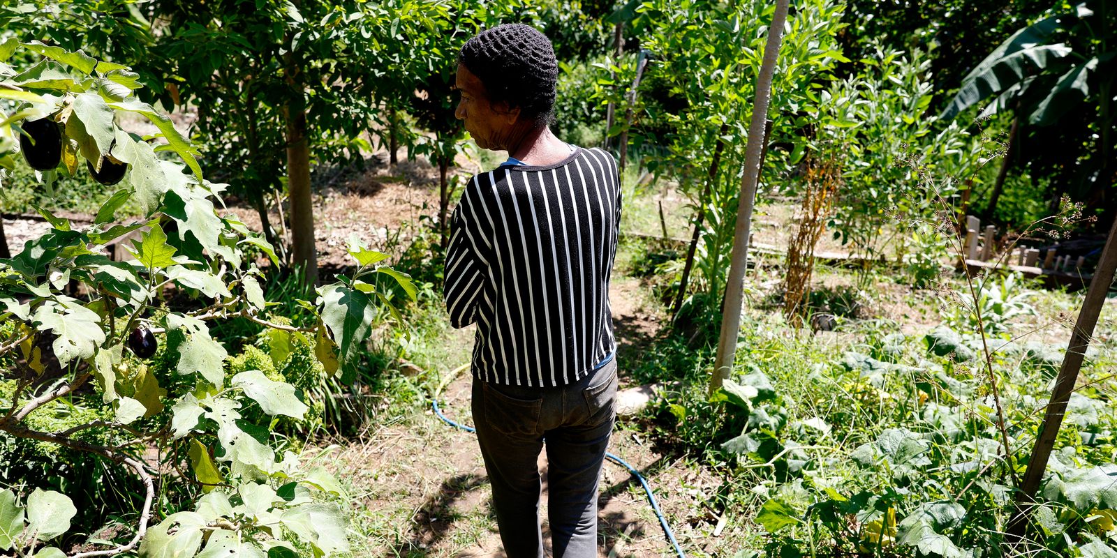 Faz um ano que a rotina de Vera Lúcia Silva de Souza, de 74 anos, começa cedo. Ela molha as plantas de casa e encara a pé a descida íngreme desde o alto do Morro do Salgueiro, na zona norte do Rio de Janeiro. Na parte baixa da comunidade, fica a horta comunitária onde trabalha para complementar a renda.