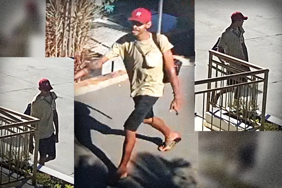 Em uma das gravações tornadas públicas, um dos suspeitos é visto usando boné vermelho, camiseta clara, bermuda escura e chinelos, além de carregar uma mochila. Segundo a Polícia Civil, as imagens são fundamentais para avançar na investigação.