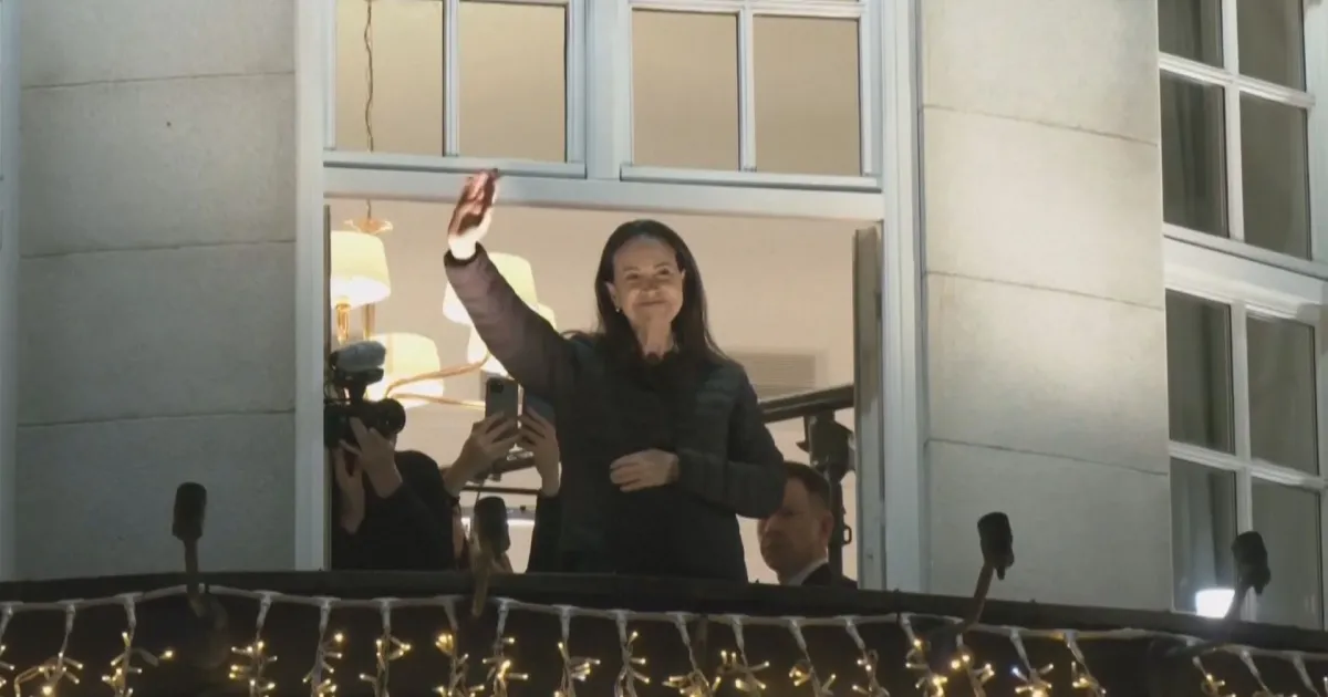 A ganhadora do Prêmio Nobel da Paz e líder da oposição da Venezuela, María Corina Machado, apareceu na varanda do Grand Hotel de Oslo nesta quinta-feira (11), no horário local, após fugir secretamente de seu país.