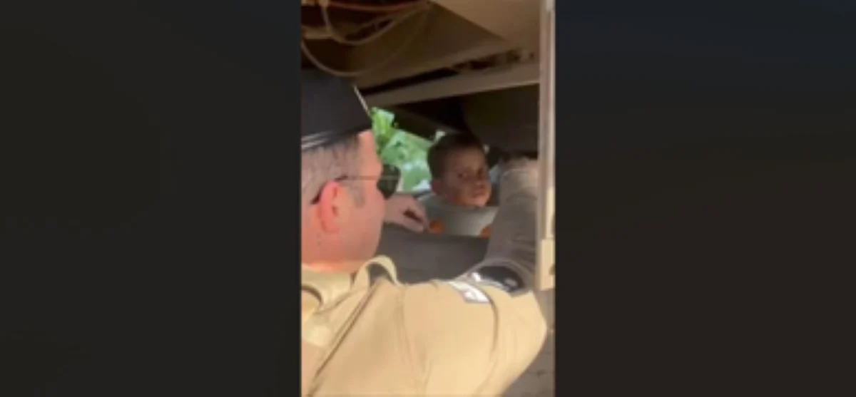 Menino é resgatado por policiais após prender cabeça em roda de carreta em Luís Eduardo Magalhães