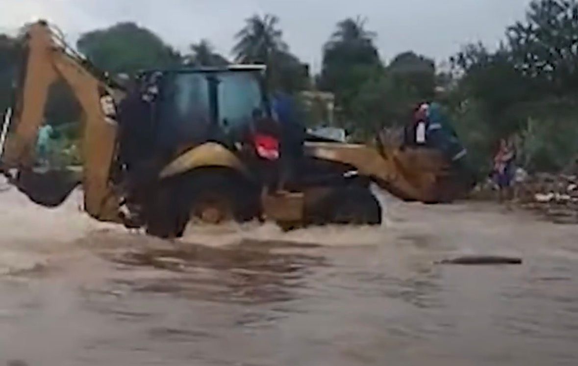 Uma moradora do povoado de Poço de Fora, na zona rural de Curaçá, no norte da Bahia, precisou usar uma retroescavadeira para atravessar um rio durante as fortes chuvas que atingiram a região no sábado, 28. Ela precisava chegar a Juazeiro, a cerca de 94 quilômetros, para realizar uma sessão de hemodiálise.