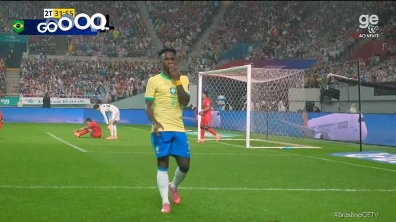O atacante da seleção brasileira Vinicius Jr. marcou um dos gols da goleada contra Coreia do Sul em amistoso para o Copa do Mundo 2026. O jogo aconteceu em Seul e o jogador marcou o quinto gol da partida.