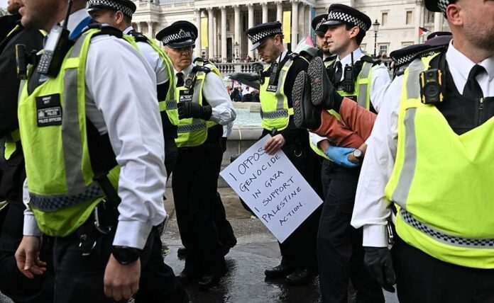 O Reino Unido anunciou neste domingo (5) que a polícia britânica deverá receber maiores poderes para reprimir protestos, depois que centenas de ativistas pró-palestina foram detidas em Londres por apoiarem o grupo proibido Palestine Action.