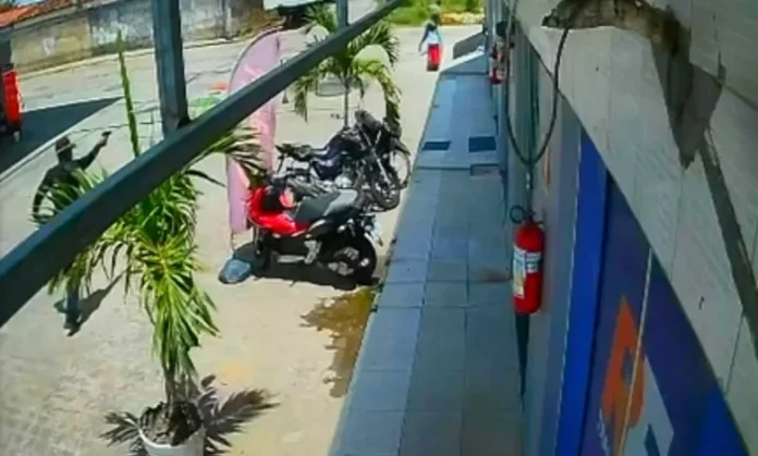 Um vídeo atribuído às câmeras de segurança do Posto Santa Rita, em Conceição do Jacuípe, mostra o momento da tentativa de homicídio registrada no local. O caso aconteceu no fim da manhã de quinta-feira (22), por volta das 10h35, em uma barbearia situada no posto, no bairro Ilicuritiba.